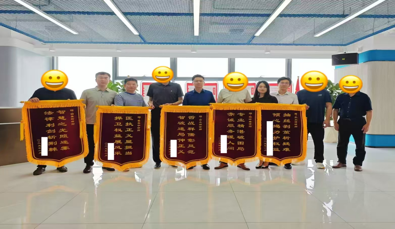 王某等企业家专程前往安徽金亚太律师事务所向高正纲、鲁鑫宇律师赠送锦旗,表达感谢。