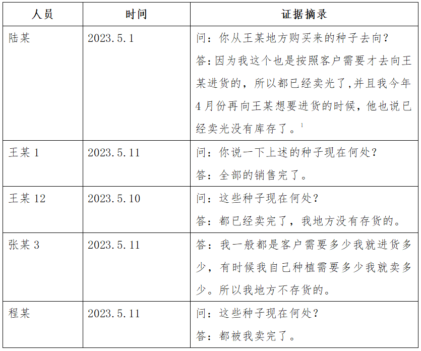 3.关于调取的稻种并无相关证据证明来源合法性