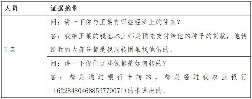 通过T某与王某的讯问笔录可以充分证明,Y公司与王某的种子购销以及T某的个人借款均是通过T某的个人账户进行出纳。
