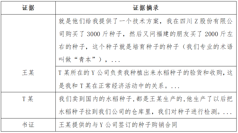 通过上述证据可以充分证明,王某系Y公司的唯一生产商,其中王某负责按照Y公司提供的技术方案进行种子种植,后将种子发至Y公司,Y公司对外进行销售,因此,王某出售的种子与Y公司出售的种子系同一品种,这一点通过检测报告也能予以证明。
